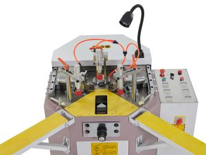 - Máy còn có chế độ ép góc kỹ thuật số bằng hệ thống ép thủy lực kết hợp với các chân ghép đồng thời có khả năng điều chỉnh máy ép góc đồng bộ loại bỏ tình trạng biến dạng những góc ép.